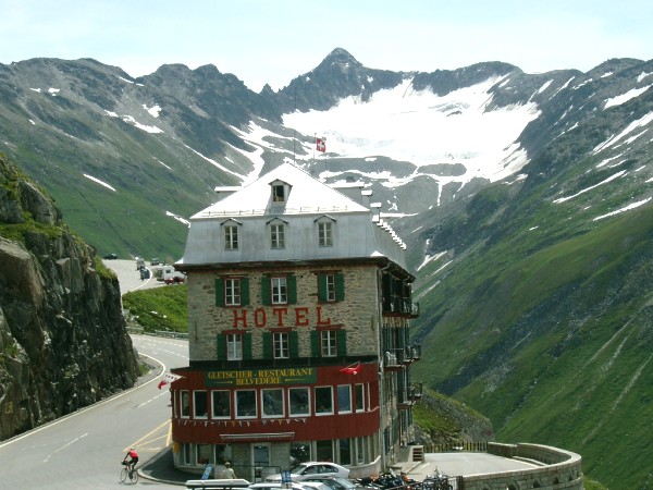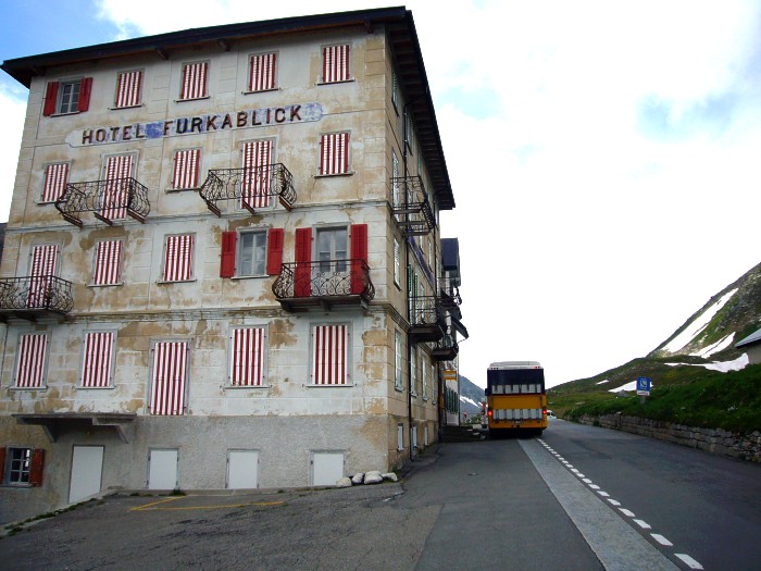 (abenteuerlich ist die Straße in den steilen Hang gelegt - links sieht man die Reste des Rhonegletschers)