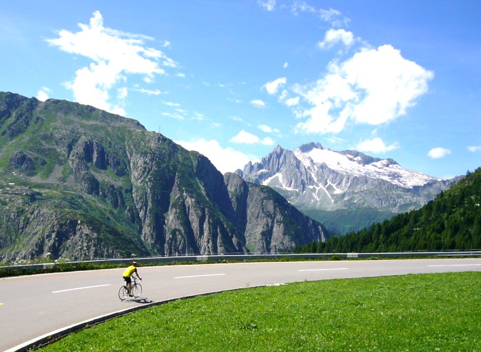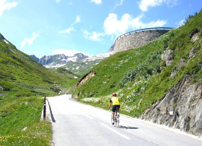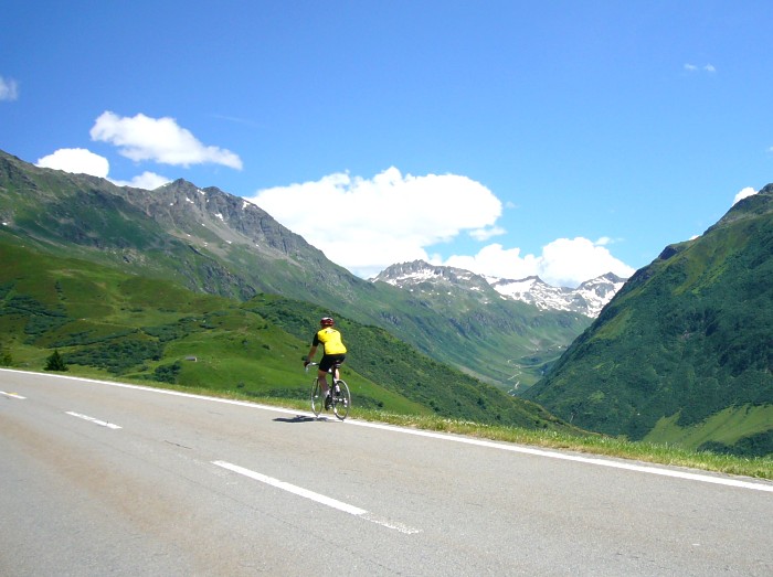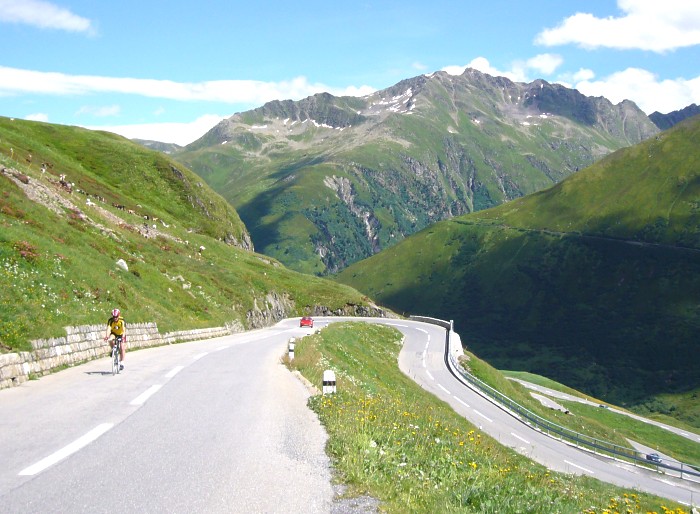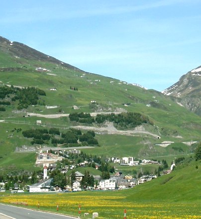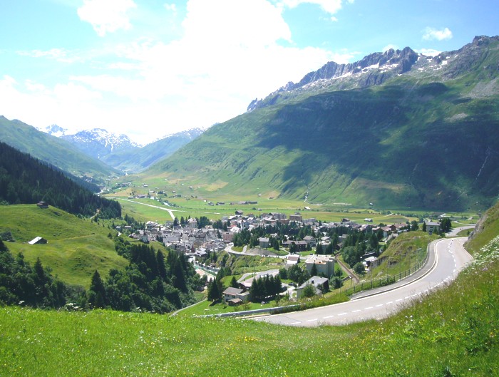 Blick über Andermatt auf die schönen Kehren des Oberalppasses