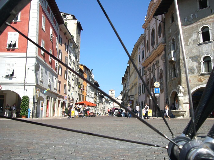 das Centro Storico von Trento durchs Vorderrad gesehen