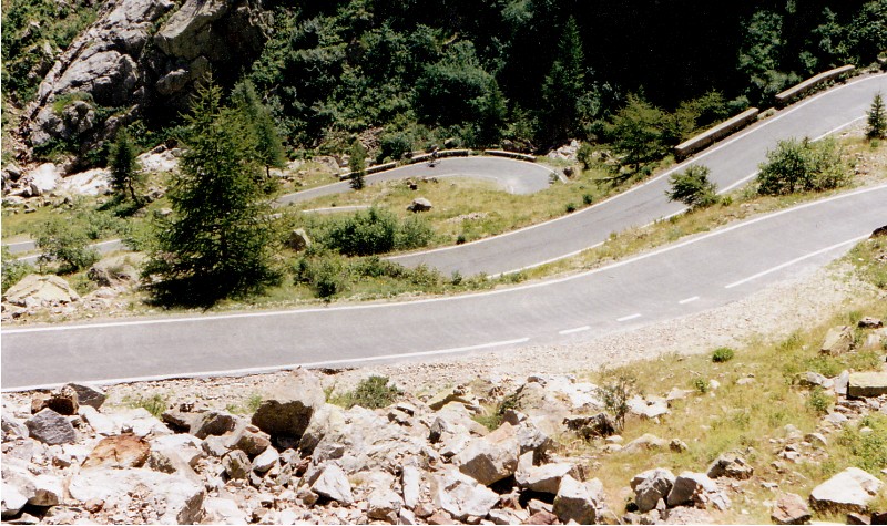 Auf der italienischen Seite einer der schönsten Pässe der Alpen. Abwechslungsreich, kehrenreich, aussichtsreich. Durch enge Felstäler, lichte Lärchenwälder und Almweiden geht es auf kleiner, verkehrsarmer Straße nach oben. |