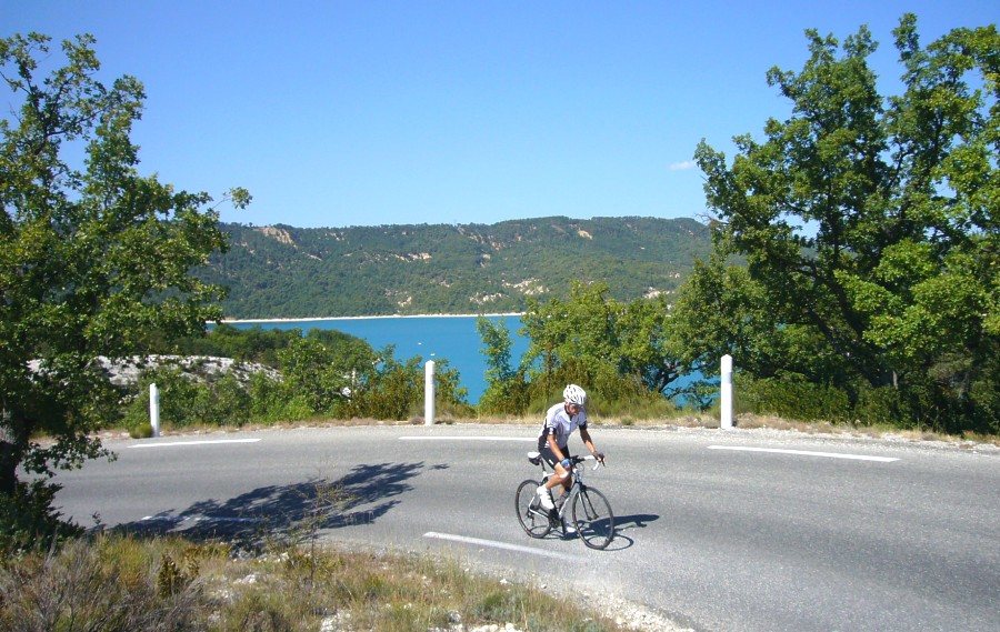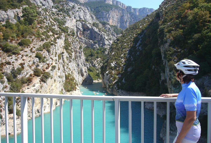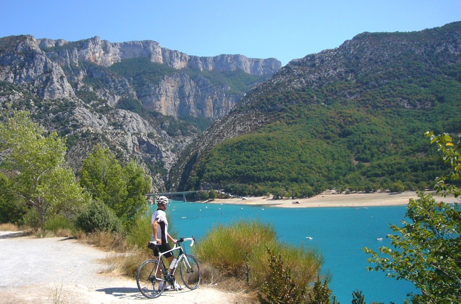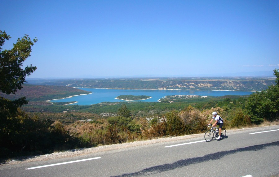 bald nach Moustiers-Sainte-Marie hat man den Lac de Sainte-Croix erreicht und genießt den Blick über den Lac und in den Ausgang des Gorges du Verdon