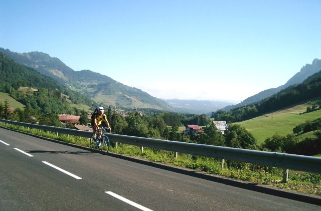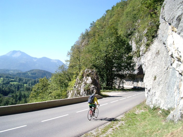 Direkt vom Genfer See aus beginnt die Straße gleichmäßig mit 4 - 5 % zu steigen und gewährt ständig schöne Ausblicke über den Genfer See. Auf der Abfahrt überfährt man auch den Col de Jambaz und bei Onnion ist die Straße in einen steilen Felshang geschlagen. Bisweilen erhascht man Blicke auf den Mount Blanc.