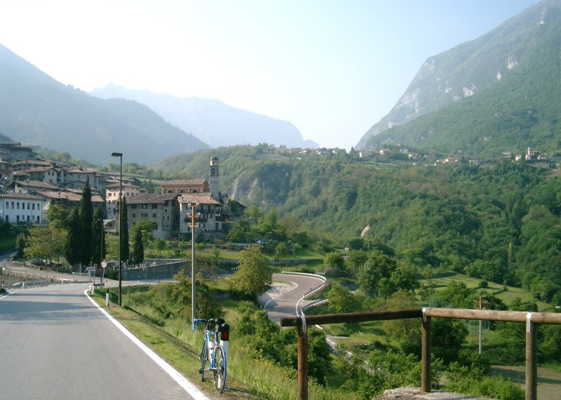 Kehren- und aussichtsreich führt die wenig befahrene Straße von Riva über Pranzo zum Tenno See und liefert dabei ständig spektakuläre Bilder über den Gardasee, die Sacraebene sowie auf die hohen Berge (Brenta) im Norden. Weniger steil und mehr bewaldet geht es auf den Balinopass und auf die Hochebene von Fiave. Von Fiave führt die aussichtsreiche Nordseite in weiten Kehren hinunter nach Ponte Arche. |