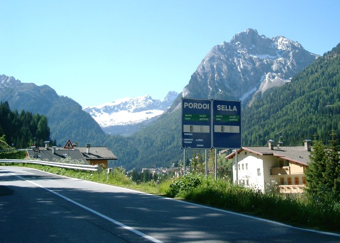 Abzweig in Canazei - der Pordoi beginnt