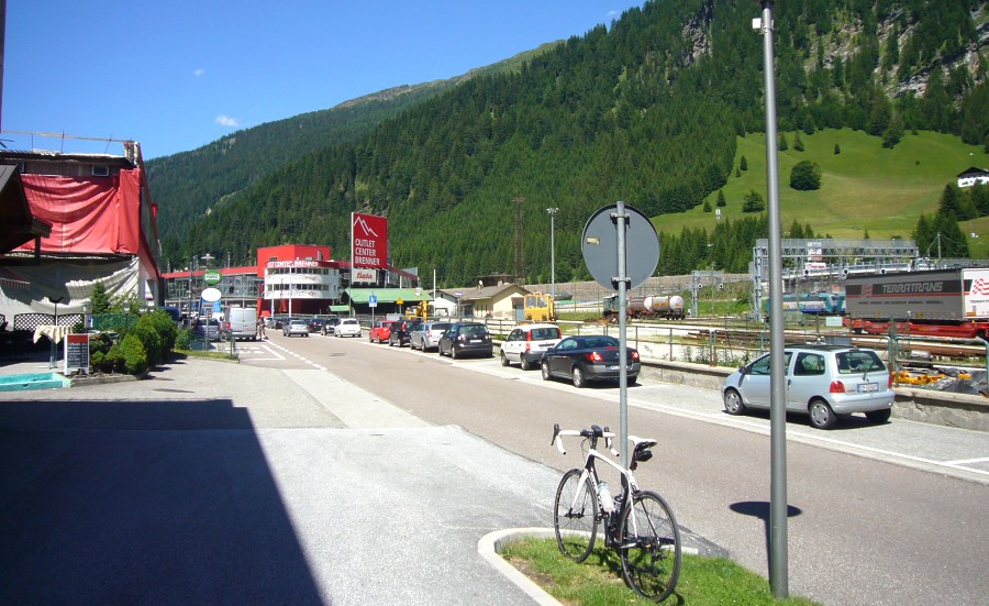 Blick über Gossensass, das Eisacktal und auf die Brücke der Autostrada
