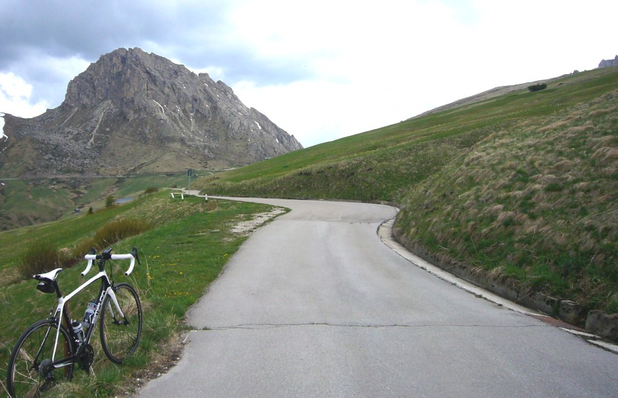 Blick auf den Westanstieg zum Passo Pordoi
