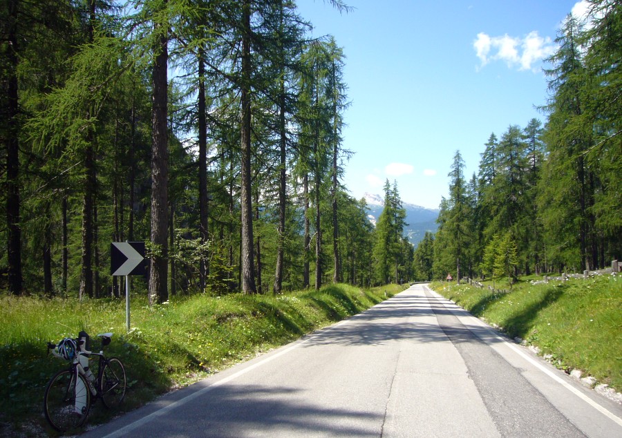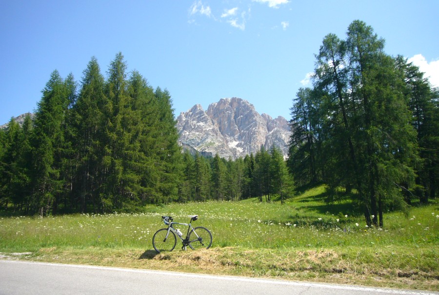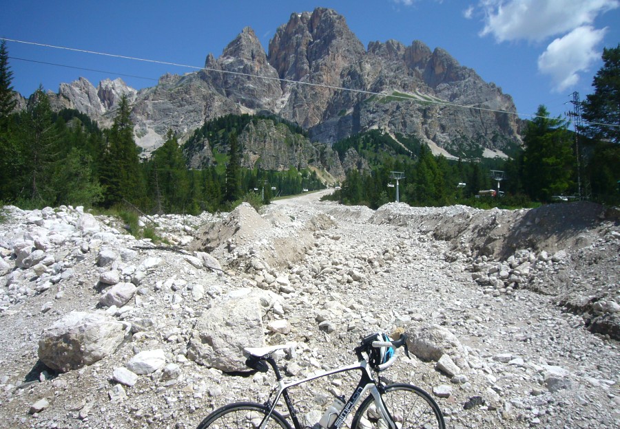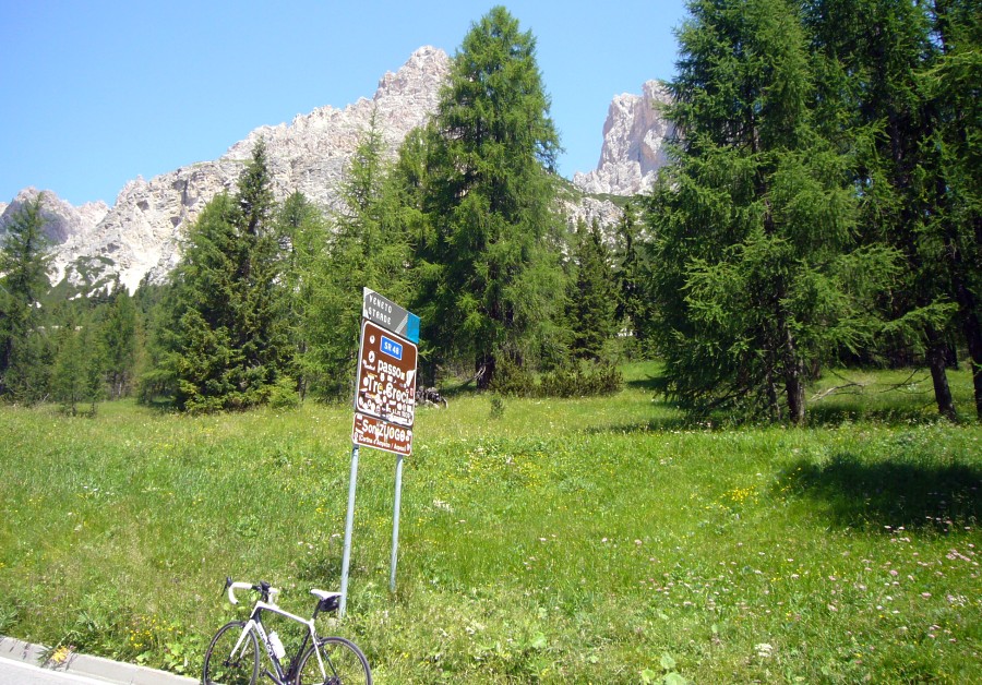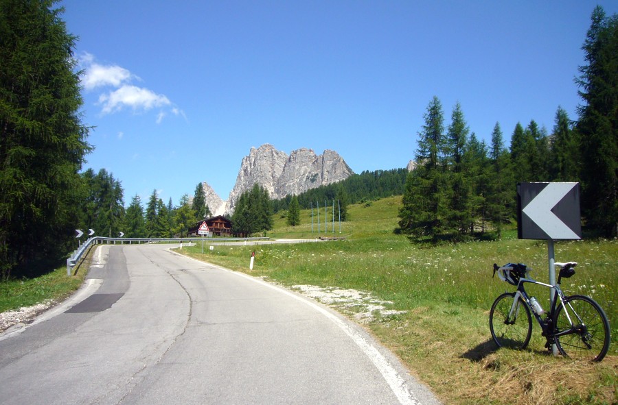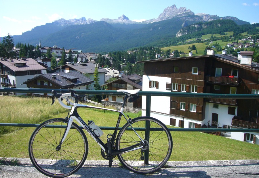 im Anstieg kurz nach Cortina - im Hintergrund der Monte Cristallo