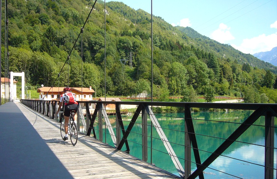 der Lago di Barcis wird auf schmaler Brücke überquert