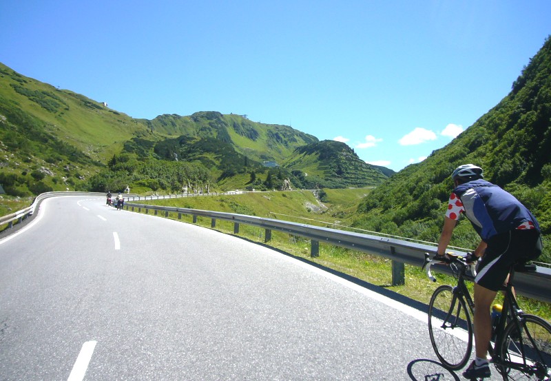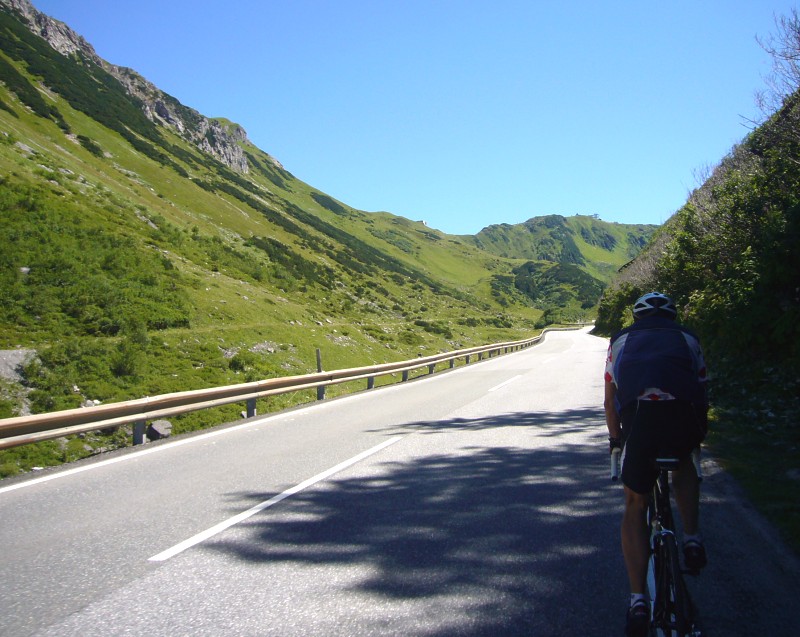 im Anstieg auf der Westseite kurz nach dem Abzweig vom Flexenpass