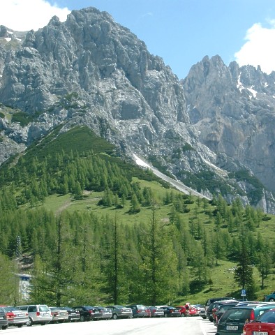 oben - auf dem Parkplatz der Dachstein-Gletscherbahn
