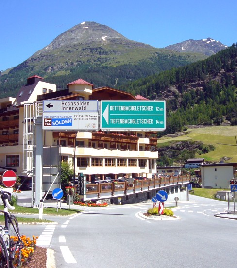 der Abzweig vom Ötztal, der Anstieg kann beginnen