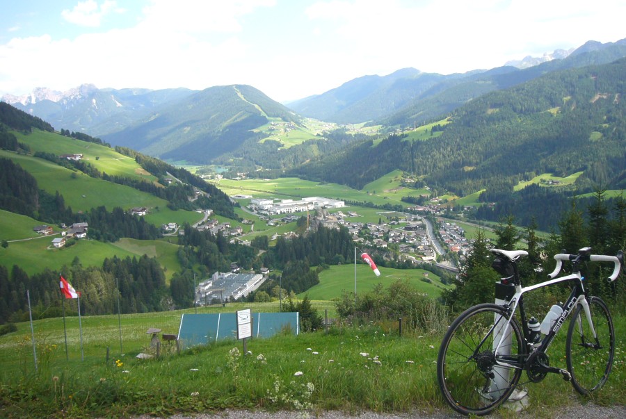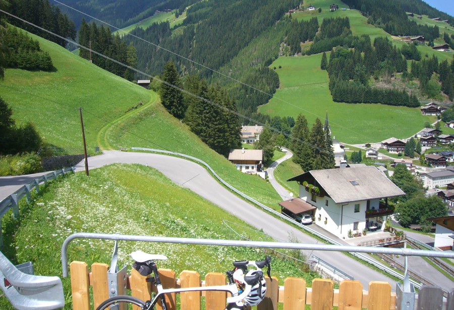 Rückblick über Außervillgraten kurz nach dem unbeschilderten Abzweig zur Höhenstraße Sillian