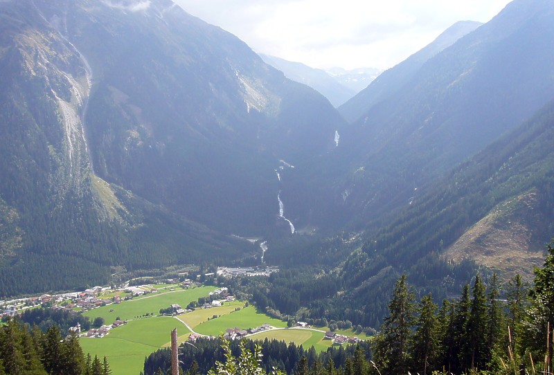 Blick bei der Abfahrt auf die Krimmler Wasserfälle