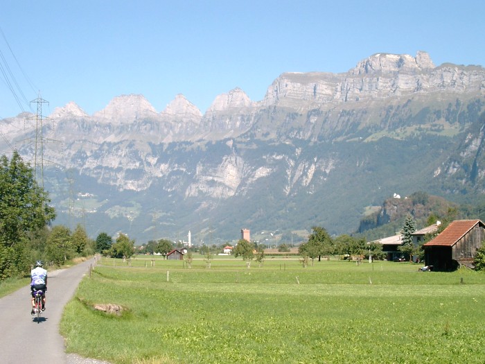 Blick auf die Churfirsten auf dem Radweg zwischen Sargans und Waalensee
