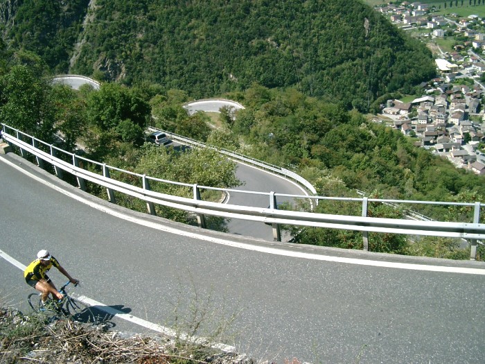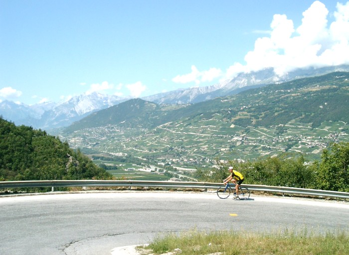 Gut ausgebaut ist die Straße, die von Sierre aus ins Val d'Anniviers führt. Anfangs am Nordhang des Rhonetals geradlinig, dann über dicht übereinander liegende Kehren wird der erste Steilhang überwunden. Tolle Ausblicke übers Rhonetal. Weiter mit moderater Steigung tief hinein ins Val d'Anniviers und nach Ayer ins Val de Zinal, immer mit der eindrucksvollen Gebirgskulisse vor den Augen. Nach der Durchfahrung des Orts Zinal endet die Straße an einem Parkplatz mit Blick auf mehrere Viertausender und den 4357 m hohen Dent Blanche.