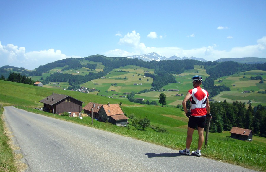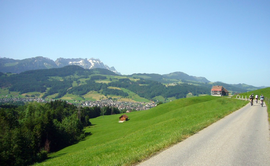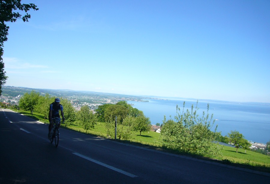 dann steigt die Straße und es eröffnen sich Ausblicke bis zum Bodensee