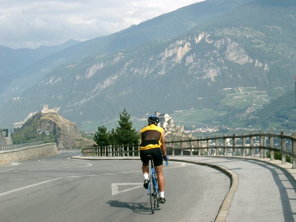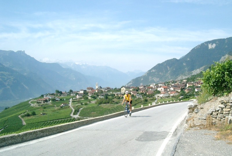 durch Weinberge geht es aus dem Rhonetal hinauf