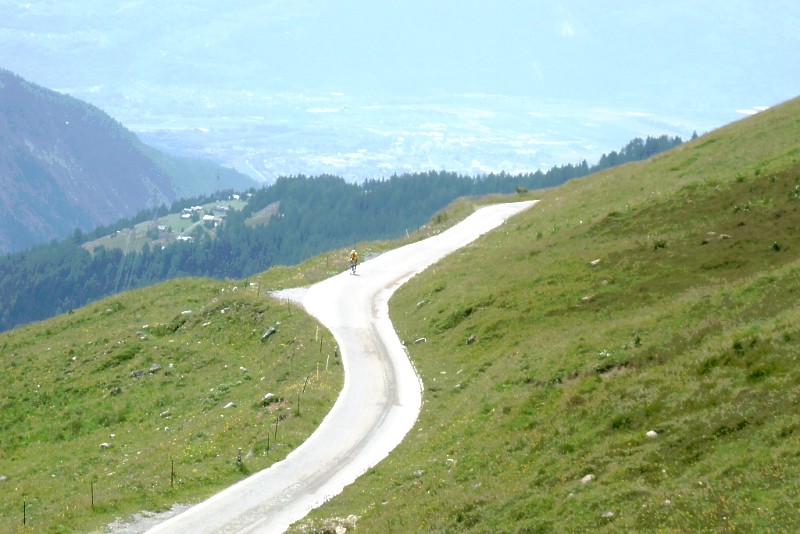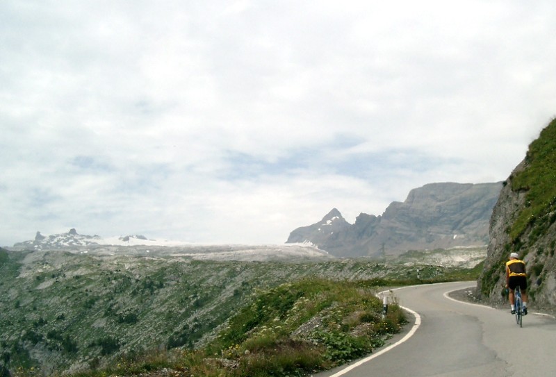 | Die Fahrt über den Col du Sanetsch endet nach kurzer Abfahrt am Lac du Senin, da der Übergang ins Berner Oberland nie fertiggestellt wurde. Von Sion geht es durch Weinberge über die Ortschaft Erde hinauf und weiter oberhalb des Morge-Tals und danach über eine schöne Serpentinengruppe in die Region des Diablerets-Gletschers, wo ein etwa 800 Meter langer, schwach beleuchteter Tunnel zu durchfahren ist. Die Straße ist nur mehr feldwegbreit und vermittelt prächtige Ausblicke, dabei übersteigt die Steigung nie 12 %.
