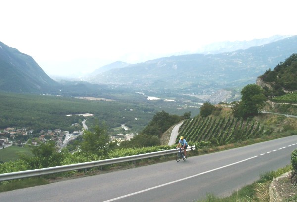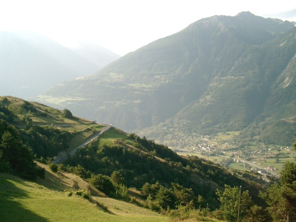 Von Susten führt die Straße über Leuk lange am Südhang des Rhonetals mit moderater Steigung aufwärts. Phantastische Blicke übers Wallis.