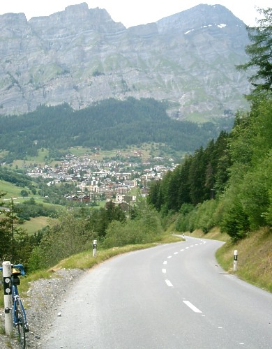 Nach dem Abzweig nach Albinen wird die Straße kurvenreicher und nach Albinen fast abenteuerlich. Eng, teils entlang an Steilhängen, führt die Straße zum höchsten Punkt (Abzweig zur Torrentalp). Nach kurzer Abfahrt der nicht gerade einladende Ort Leukerbad. Aber die Abfahrt über Inden lässt des Radlers Herz wieder lachen: Schöne Streckenführung mit toller Aussicht.