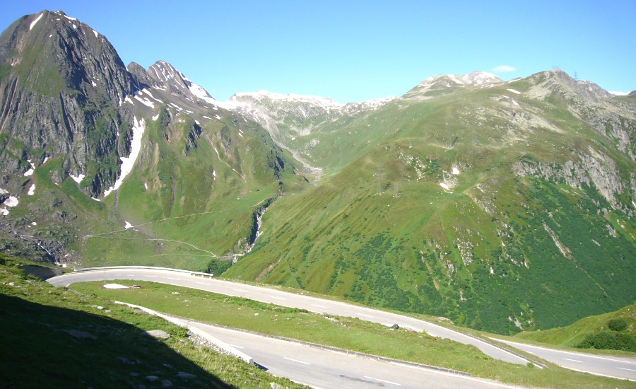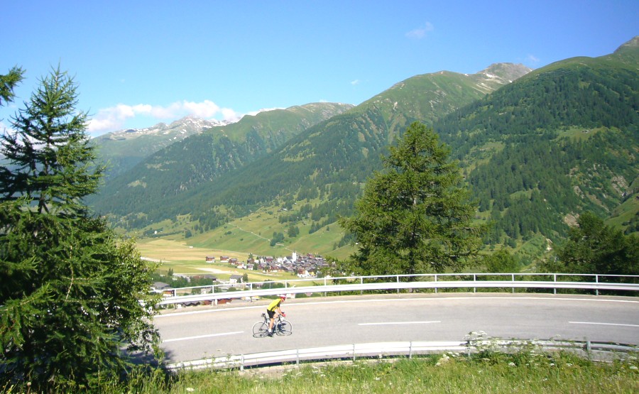in einer der ersten Kehren - Blick über Ulrichen ins Oberwallis