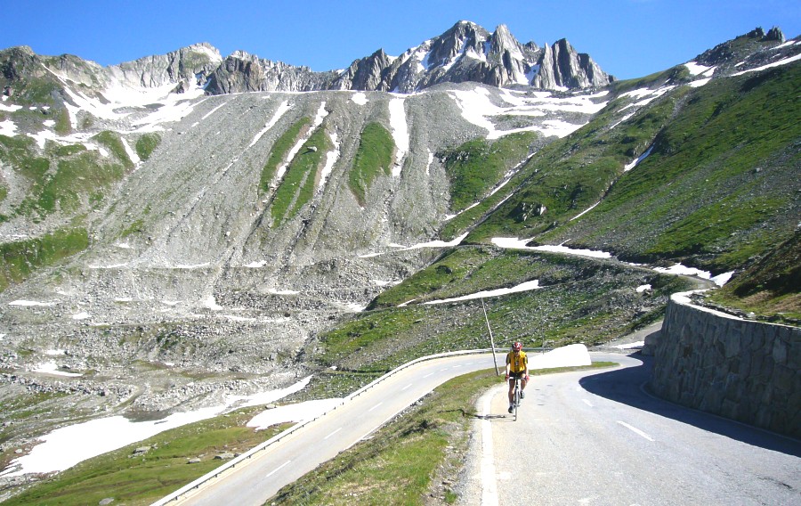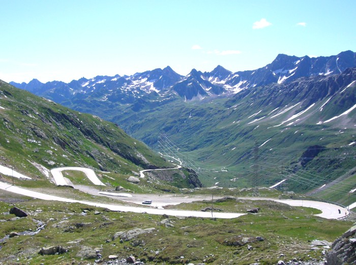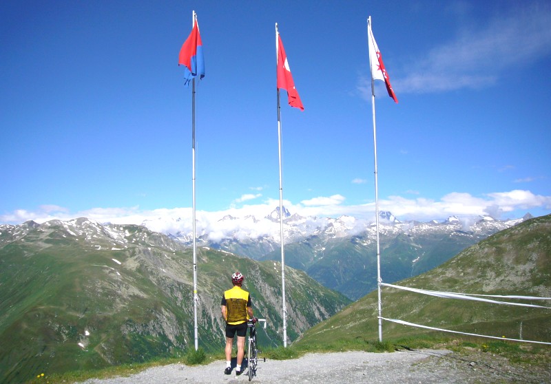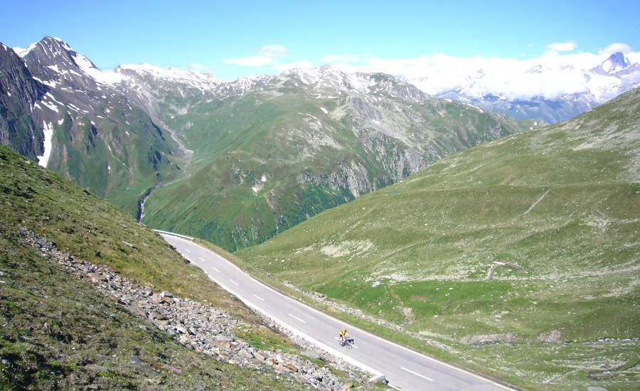 Blick von der Passhöhe auf die umgebenden Viertausender