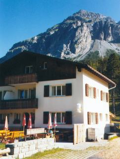 ein typisches Engadiner Haus im Startort Zernez