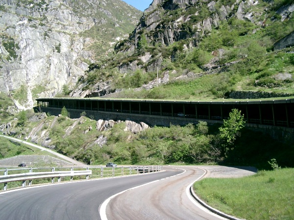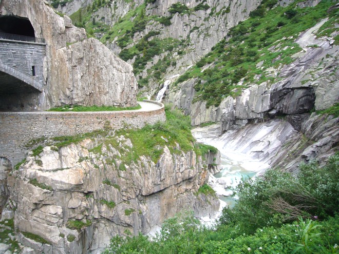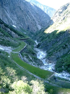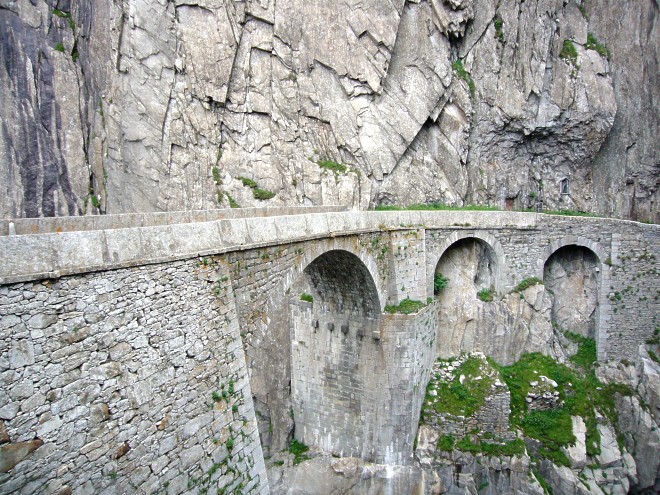 die alte, nicht mehr befahrbare Straße durch die Schöllenenschlucht
