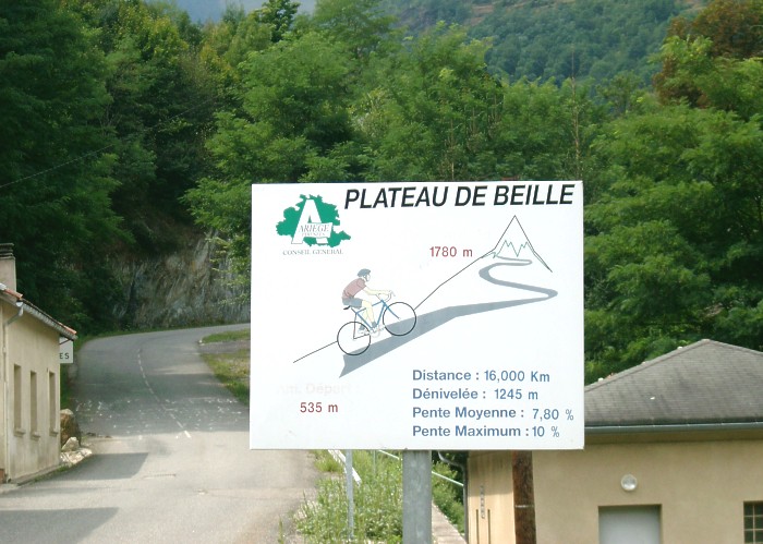 Das 1780m hohe Plateau de Beille war im Jahr 2004 zum dritten Mal Bergankunft bei der Tour de France. Die Auffahrt über 16 Kilometer und 1245 Höhenmeter ist überaus lohnend. Schon bald verlässt man den Wald und es ergeben sich phantastische Aus- und Tiefblicke. Auf dem Plateau de Beille befindet sich nur ein großer Parkplatz und ein rel. kleines Gebäude.