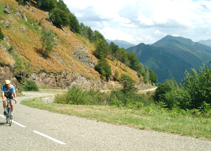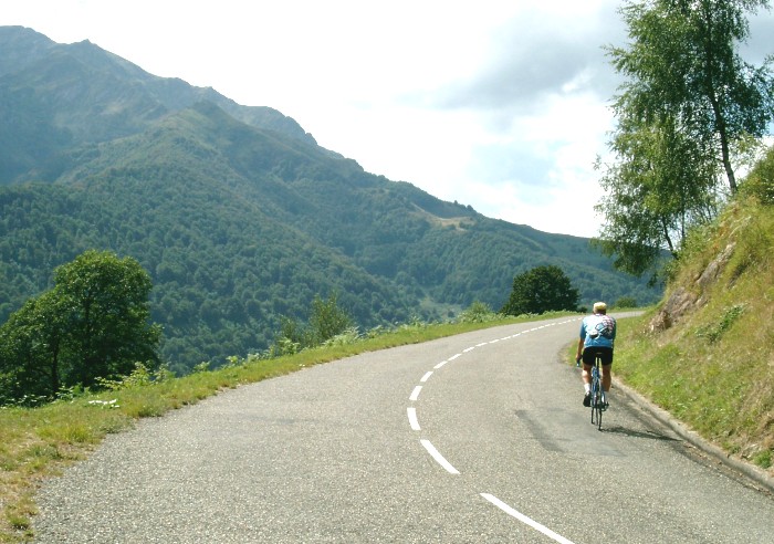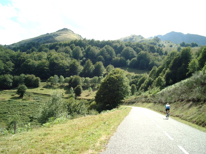 Ein Passanstieg, der in der Vergangenheit recht selten von der Tour befahren wurde, aber 2003 und 2004 war er wieder einmal Bestandteil der Tour. Auf 15 Kilometern werden knapp 900 Höhenmeter überwunden, dabei zieht die Straße ziemlich gleichmäßig mit 6 - 8 % aufwärts, in der oberen Hälfte immer an einem Bergrücken entlang. Schon von weitem sieht man die Passhöhe.