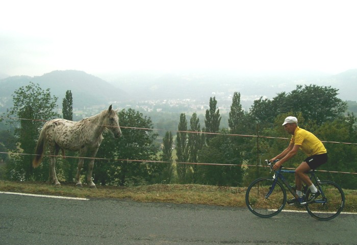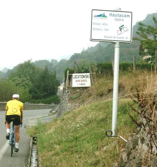 Klassische Bergankunft der Tour. Schön gestuft und damit trotz der bisweilen 12 % Steigung recht locker zu fahren. Immer weider schöne Tiefblicke zurück auf den Ausgangsort Argeles Gazost. Überraschend, dass es von Hautacam noch weitere 115 Höhenmeter über weite Kehren zum Col de Tramassel, dem Endpunkt der asphaltierten Straße aufwärts geht.