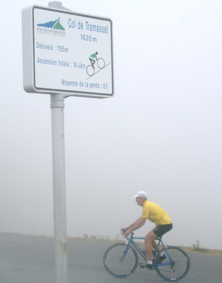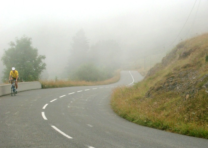 im Nebel in Hautacam und noch etwas höher auf dem Col de Tramassel