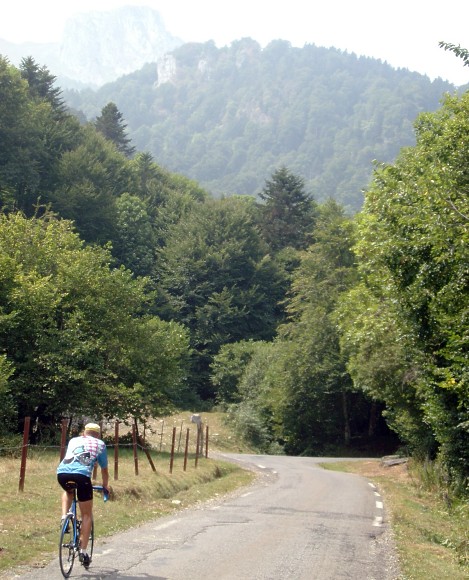 Ein schöner, kleiner Pass, der den Übergang in den westlichsten Teil der Pyrenäen bildet. Dreigeteilt, der untere etwas steilere Teil mit eindrucksvollen Rückblicken auf das Tal der Gave d'Ossau, das baumfreie, aussichtsreiche Zwischenplateau und der letzte mittelsteile Abschnitt, der im Wald zur Passhöhe führt. Die Abfahrt weist anfangs ein längeres 15 % steiles Gefälle auf.