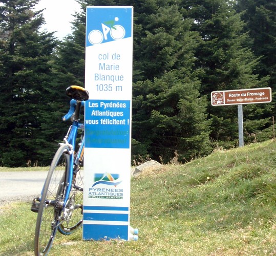 (der Col de Marie-Blanque gehört zur Route de Frommage - linkes Schild)