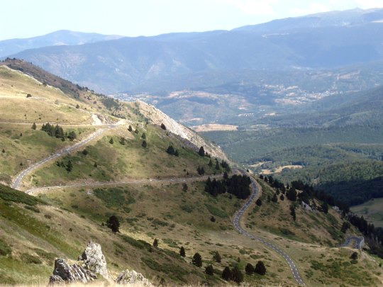 Ein gigantisch schöner Pass! Gigantisch der Höhenunterschied, gigantisch die Landschaft v. a. aber weist das im oberen Teil winzige Sträßchen eine gigantisch schöne und spektakuläre Streckenführung auf. Engste Serpentinengruppen wechseln sich ab mit weiten Kehrengruppen in baumloser hochalpiner (pyrenäer) Landschaft. Der Col de Pailhères wurde 2003 zum ersten Mal von der Tour de France befahren.