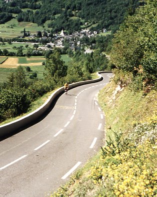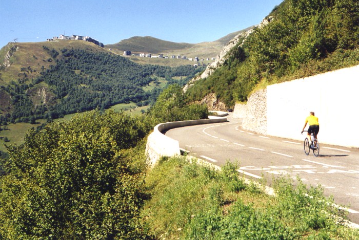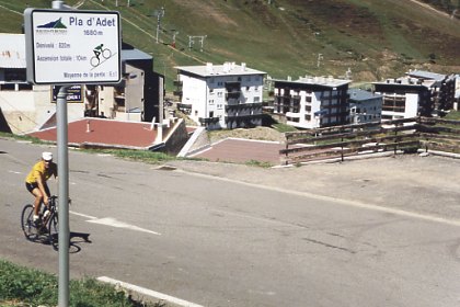 Hart aber phantastisch schön ist die Auffahrt zum Skiort Pla d'Adet Soulan. Von Anfang an begleitet ein freier Blick hinab auf den Ort Soulan und auf die grandiose Pyrenäenszenerie den Radler. Eine lange, leicht kurvige Rampe mit bis zu 12 % Steigung in den unteren 2/3 des Anstiegs und ein flacheres Schlussstück prägen die Auffahrt.