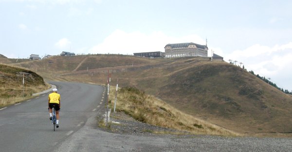 Eine Bergankunft die schon mehrmals von der Tour befahren wurde. Rund 1200 Höhenmeter auf ca. 18 Kilometern. sind zu überwinden Eine aussichtsreiche, lohnenswerte Auffahrt, im oberen Teil über viele Kehren in freiem Gelände. Spektakulär das schon von weitem sichtbare mehrstöckige "Grand Hotel Superbagneres"