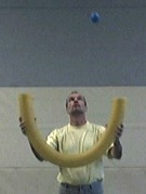 Wenn du nun mehr Schwung gibst, fliegt der Ball aus der Öffnung nach oben, fange ihn wieder und lasse ihn aus der anderen Öffnung fliegen, der erste Trick ist geschafft.